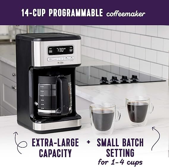 - Extra-Large Capacity: This programmable coffee maker brews up to 14 cups of delicious hot coffee at a time